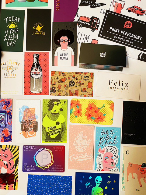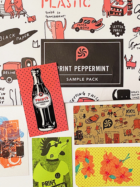 While searching the web for printers that would be willing to send samples. I came across Print Peppermint, a fun online print service with quirky illustrations as part of their brand. I sent an email with the request and quickly got a response from the founder Austin Terrill. Austin offered not only to send a multitude of printed samples but also provided a link to their online videos and offered to be a guest lecturer for the class.