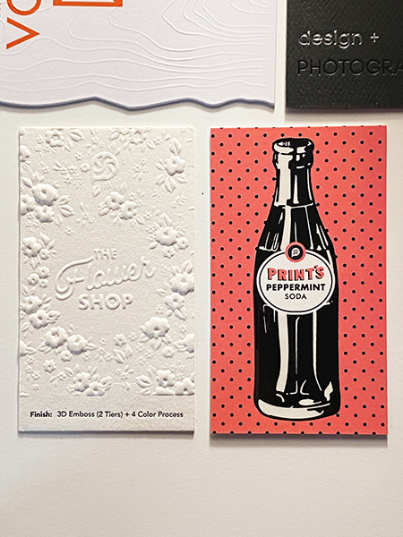 I was super excited that the printing gods heard my call and led my web browser to Print Peppermint. Austin hooked me up with a teacher sample pack and provided almost 200 samples for me to share with students in the class. When the samples arrived at my house, I was almost giddy reviewing the high-quality assortment of paper treasure. The samples included various paper stocks, finishes, effects and printing techniques. They ranged from professional and polished to fun and funky. I could not wait to get the samples in the hands of the students.